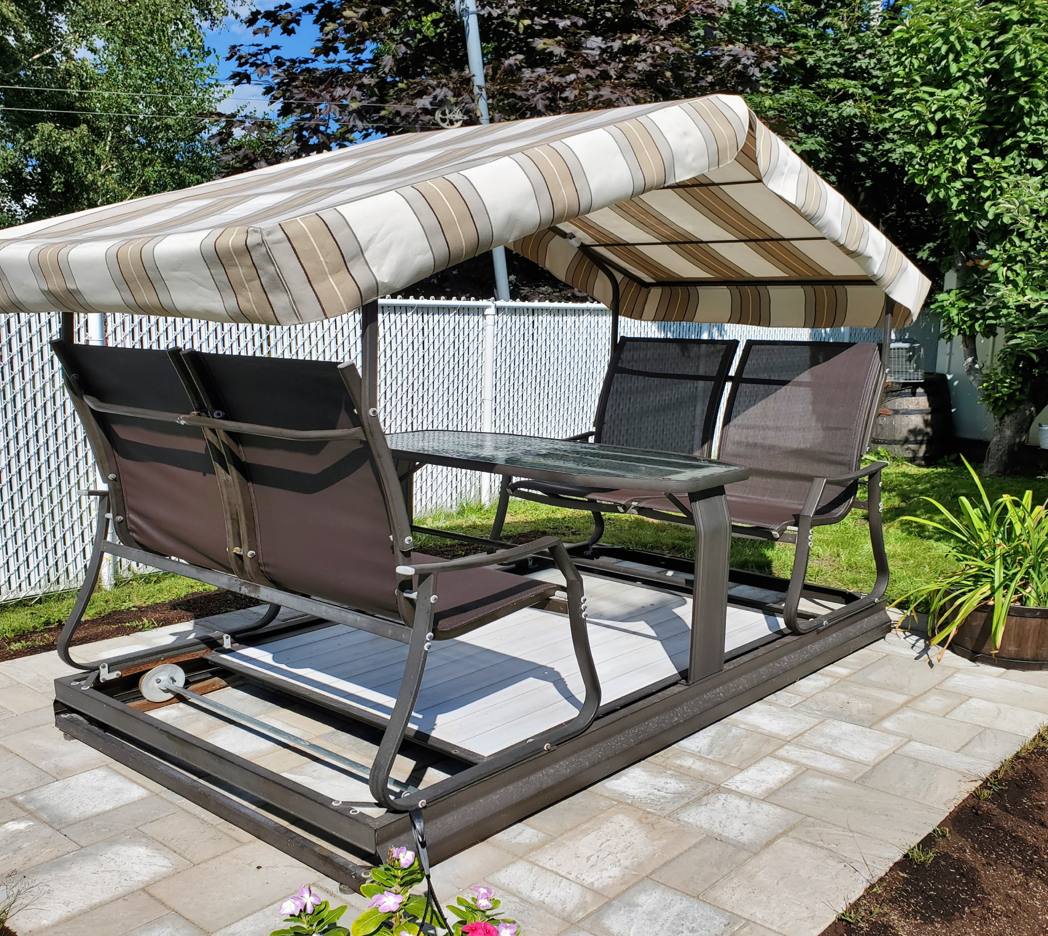 Toit balançoire en toile pour remplacement de votre ancienne toile. On vous fabrique une toile de meilleure qualité, sur mesure de votre structure, à la couleur de votre choix.